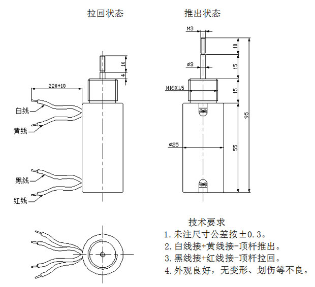 白线+黄线=顶杆推出