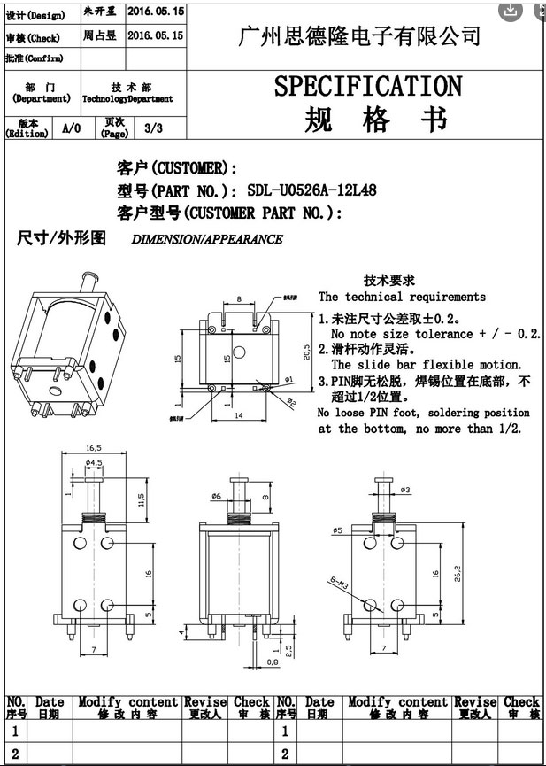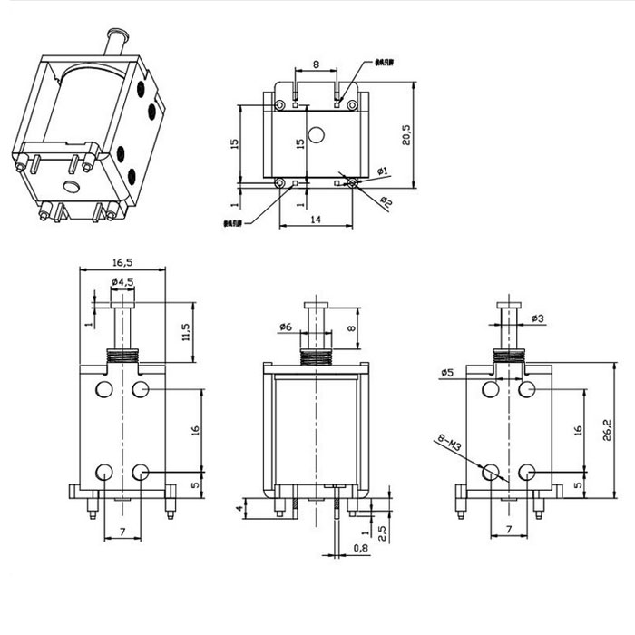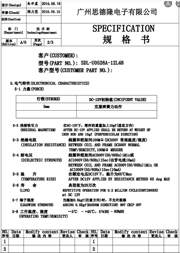 | 电压: | DC12V | 行程: | 10mm | 电阻: | 48欧 | 功率: | 3W |