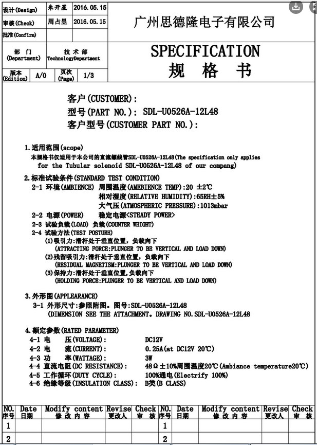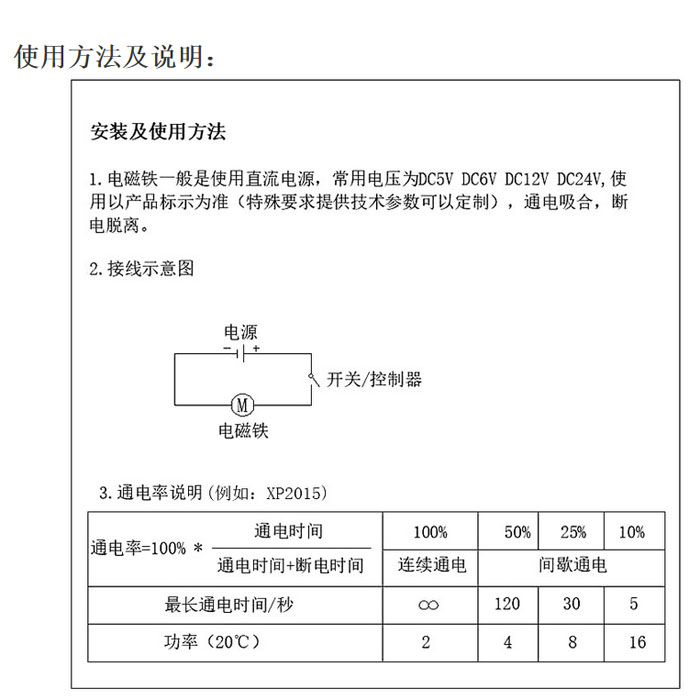 | 电流: | 0.25A | 通电率: | 100% | 弹簧回力: | 吸力: |
